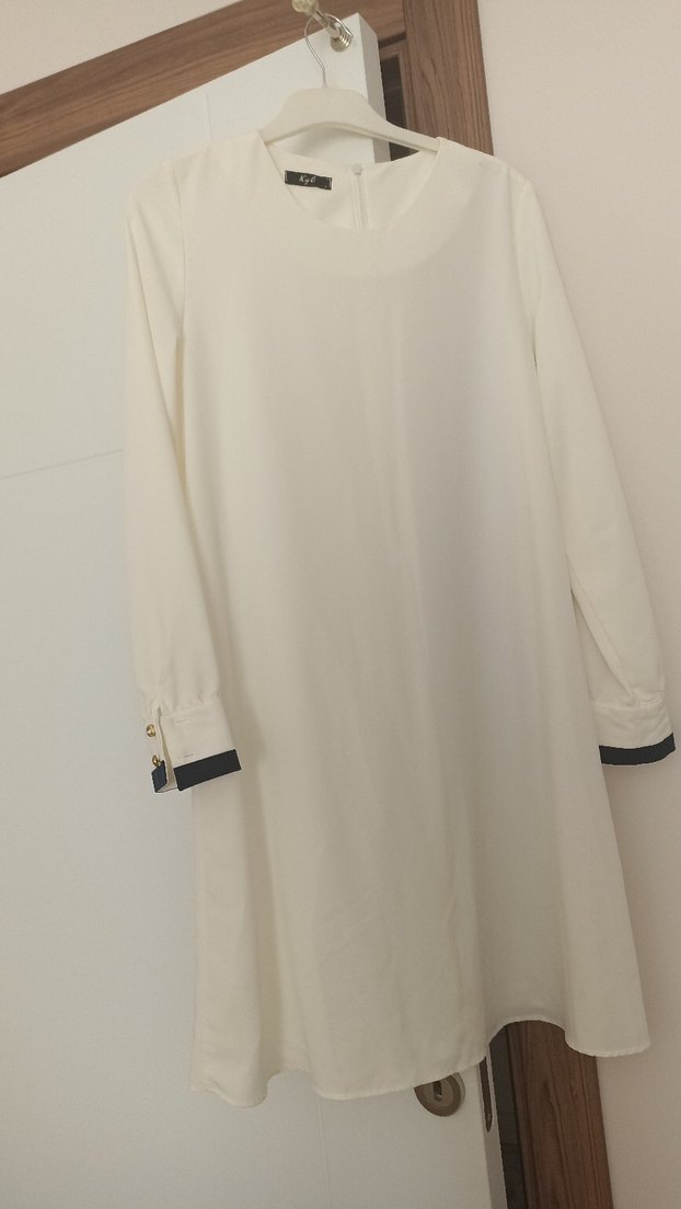 Beyaz Uzun Kollu Midi Tunik