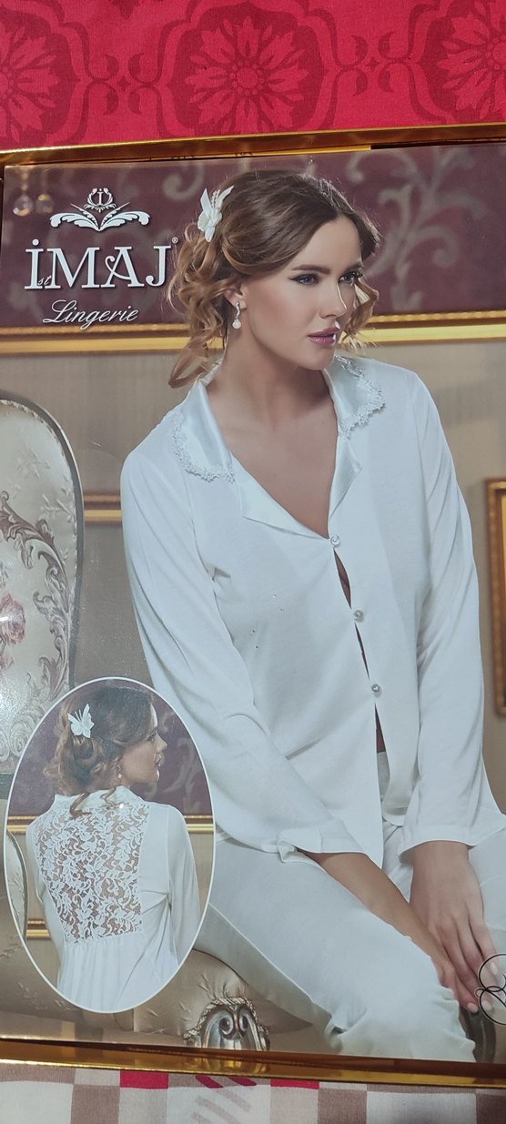 ürün içeriği kutu üzerinde gözüktüğü gibidir ve parçalar eksiksiz olarak durmakta. Hiç kullanılmamış kutulu üründür Beyaz, uzun kollu mini pijama takımı, bol kesim ve sırtında ince dantel detayına sahip, klasik ve modern rahatlığı bir arada sunuyor. Önünde düğmeli ve zarif yakalıdır. ️
