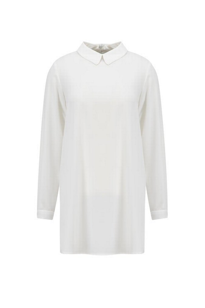 Bu beyaz bluzu uzun kollu ve yakalıdır, bol kesimlidir. İpek gibi dokusu ve minimalist normcore tarzıyla ofis için uygundur. Desensiz ve hafif renktedir. ✨l beden arkası fermuarlı Armine marka