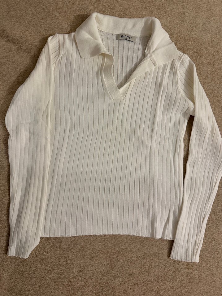 Beyaz, uzun kollu, yaka detaylı iyi durumda bir butikten aldım