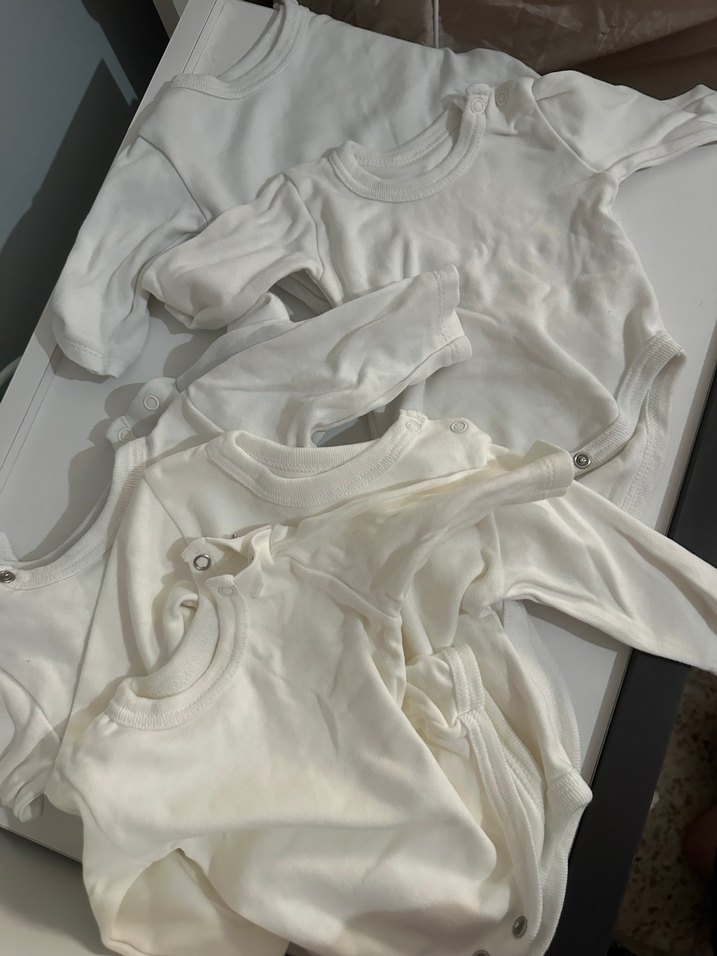 Yumuşak pamuktan yapılmış beyaz uzun kollu bebek body, yuvarlak yakalı, sade ve rahat tasarıma sahip. Günlük kullanım için uygundur. 9 adet uzun kollu tulum. İçinde krem rengi olan da var.