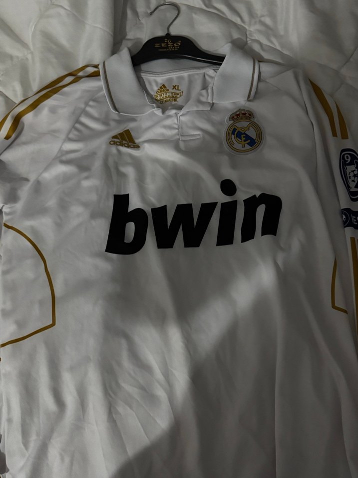 Beyaz, uzun kollu, düğmeli yakalı erkek forması. 'bwin' baskılı, sentetik kumaştan, sportif ve şık görünümlü. Ronaldo yazılı