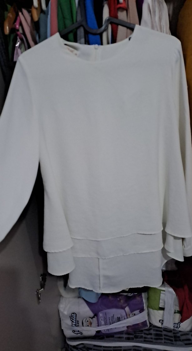 Beyaz renkte, uzun kollu, yuvarlak yakalı ve salaş kesim olan bu bluz, fırfır detayları ve yumuşak sentetik kumaşıyla günlük kullanım için uygundur. onu kisa arkasi uzun dökümlü bi durusu var