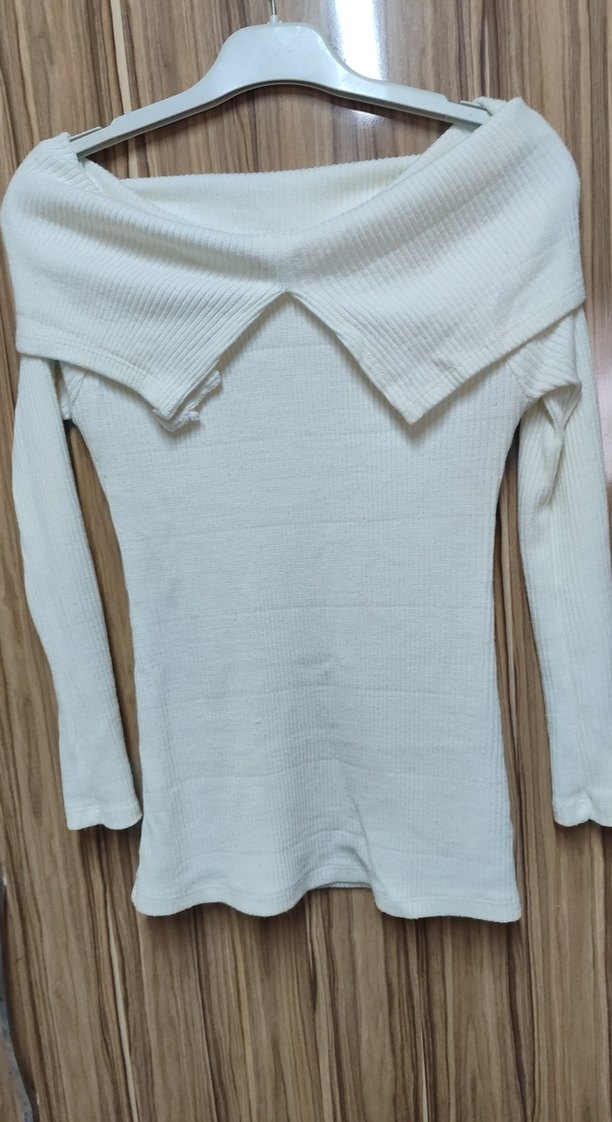 Beyaz renkte, uzun kollu ve kayık yaka detaylı, triko kumaştan yapılmış, normal boy midi uzunluğunda, vücuda oturan kadın kazak. Rahat ve sade tasarımlı, günlük kullanıma uygun.