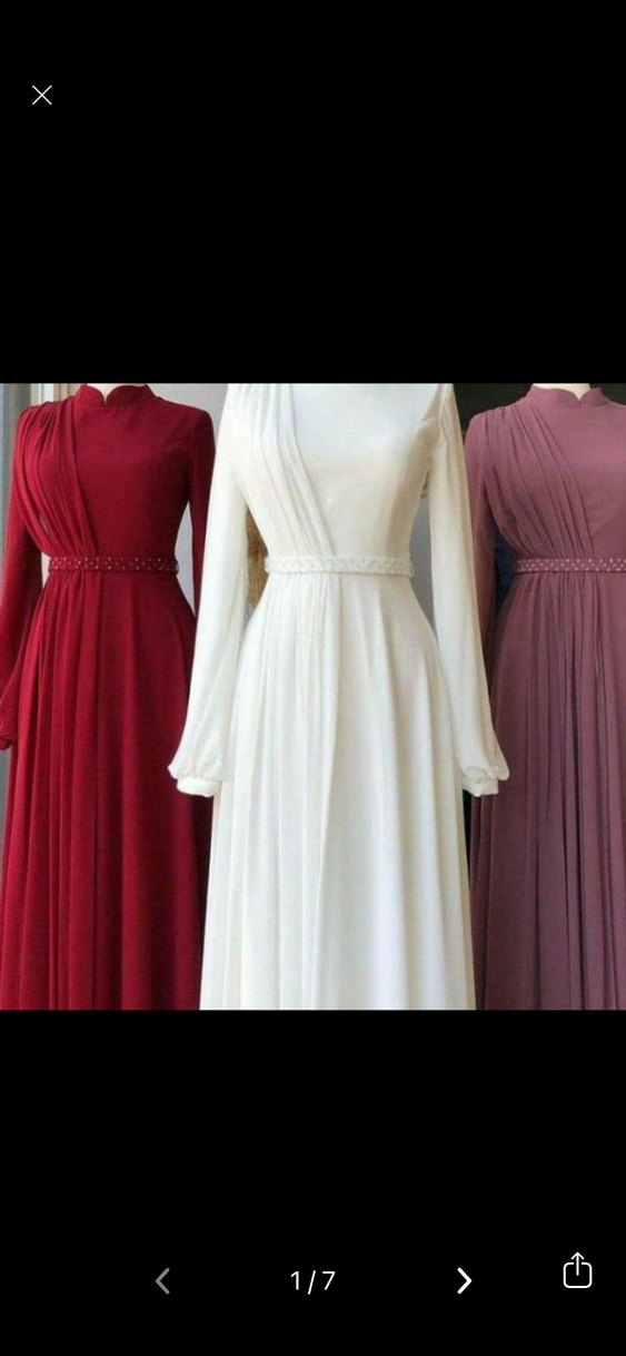 Beyaz Uzun Kollu Yüksek Yakalı Abiye Elbise