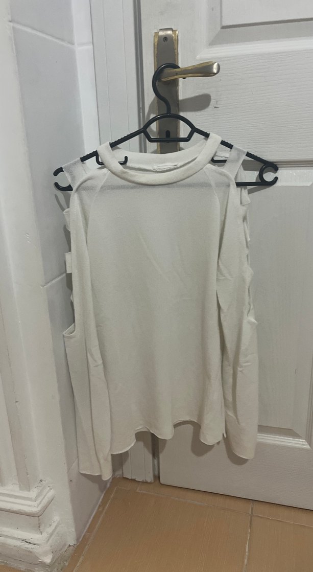 Beyaz renkte, uzun kollu ve yüksek yakalı bu salaş bluz midi boydadır. Düz, hafif sentetik kumaştan yapılmış, minimal ve zahmetsiz şıklık sunar. ✨