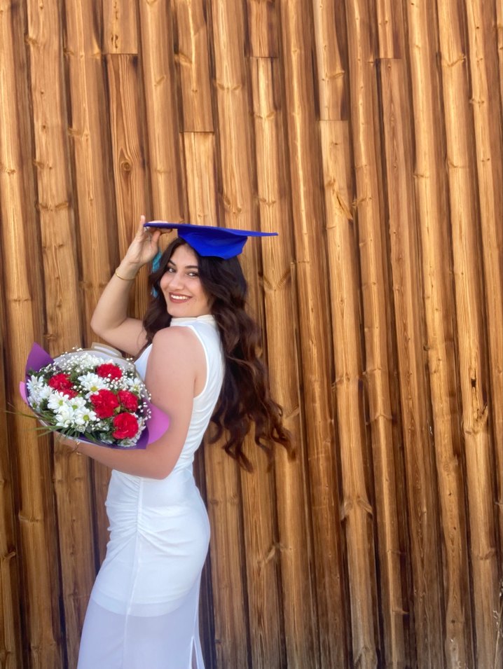 Beyaz,, uzun ve vücuda oturan bu mezuniyet elbisesi, askılar ve püskül detayıyla cesur, bohem bir tarz sunar. Sadece bir kez giyildi o kadar naif bir elbiseki mezuniyette gören herkes çok beğendi