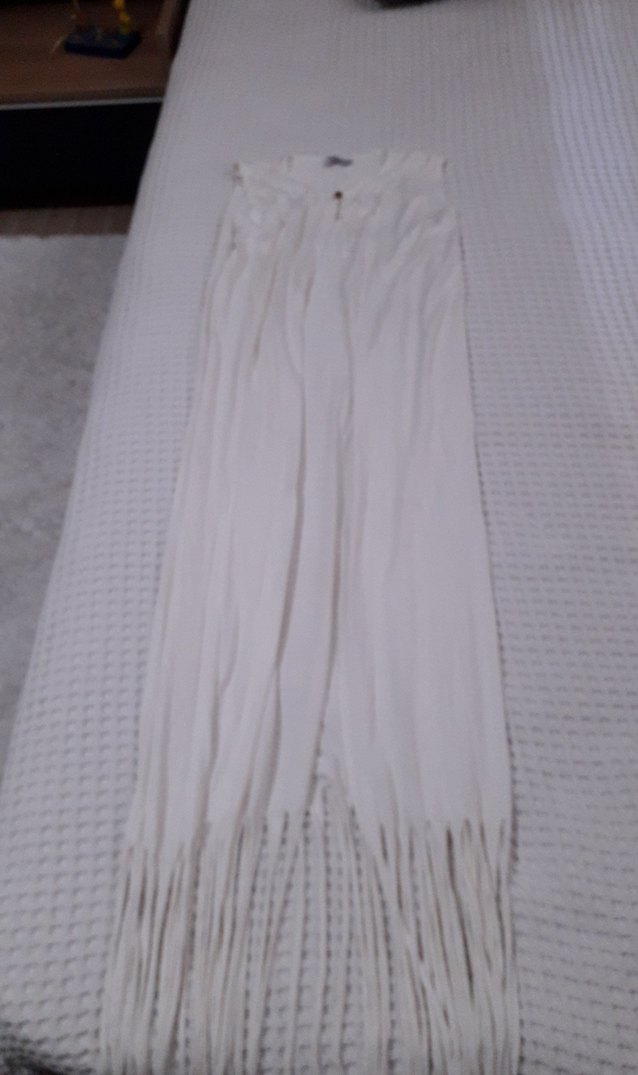 Yumuşak penye kumaştan, piliseli ve püsküllü detaylı beyaz uzun, bol kesim bohem tarzını yansıtıyor. normal yelek olarakta mayo bikini ustu olarakta kullanilir