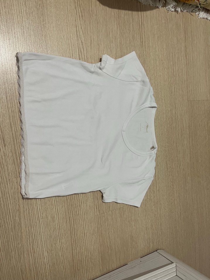 Yuvarlak yakalı ve narin kenar detaylı beyaz kısa kollu kız çocuk atleti. Yumuşak ve rahat kumaştan üretilmiştir.