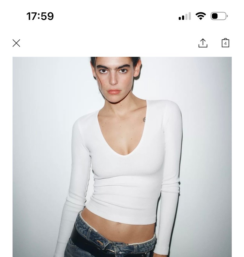 Pamuk kumaştan, uzun kollu ve V yaka beyaz crop top. Minimalist tasarımıyla günlük şıklık sunar. ✨