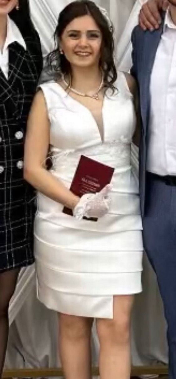 Beyaz V Yaka Drapeli Midi Nişan Elbisesi