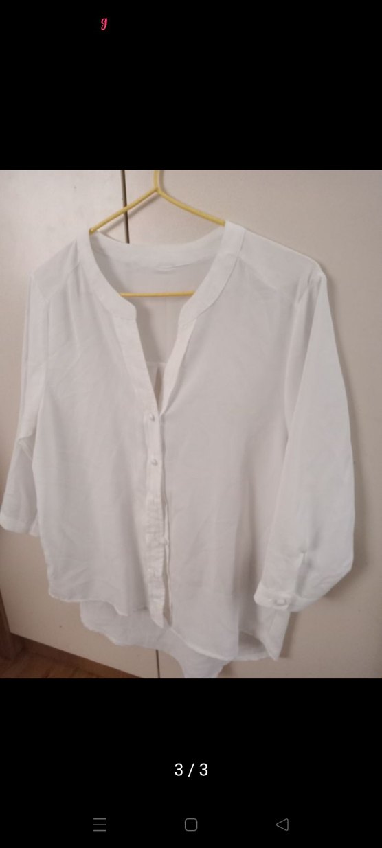 V yaka ve düğmeli önüyle beyaz gömlek, bol kesim, uzun kollu ve normal boy midi tarzında. Minimalist ve günlük kullanıma uygun.