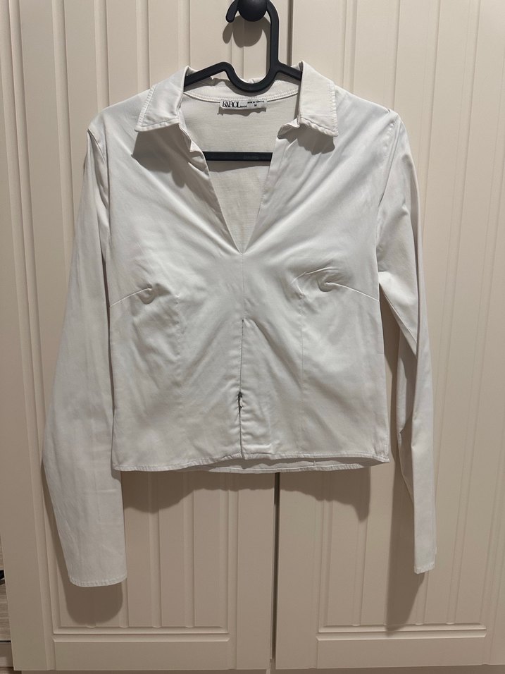Beyaz V Yaka Düğmeli Kadın Gömlek