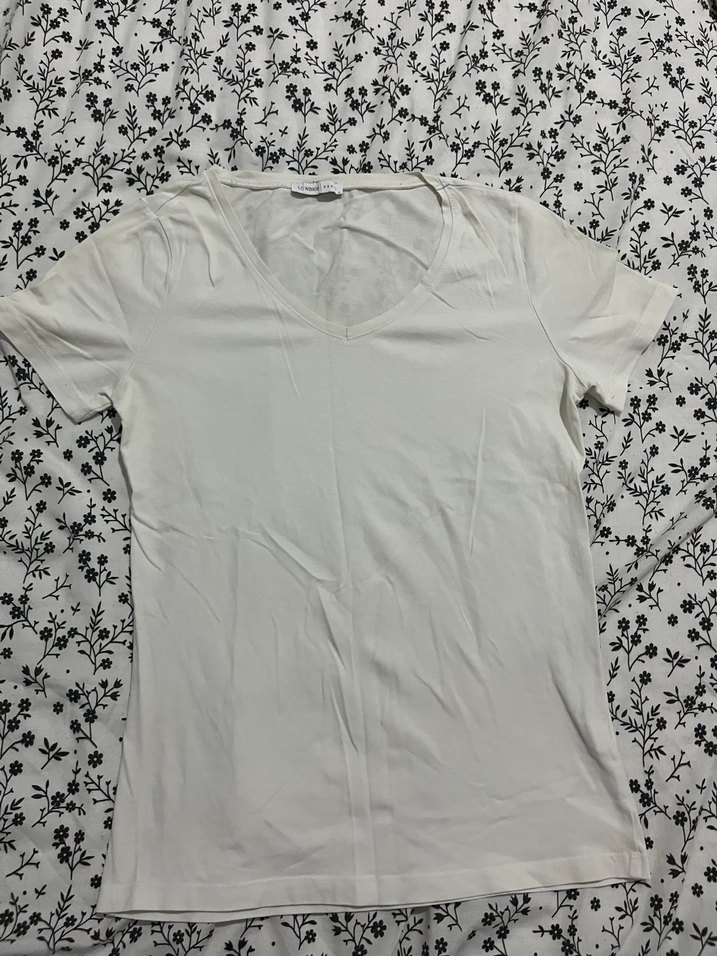 Beyaz V Yaka Kadın Tişört