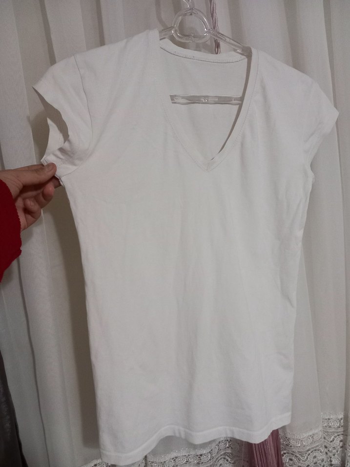 Beyaz V Yaka Kadın Tişört