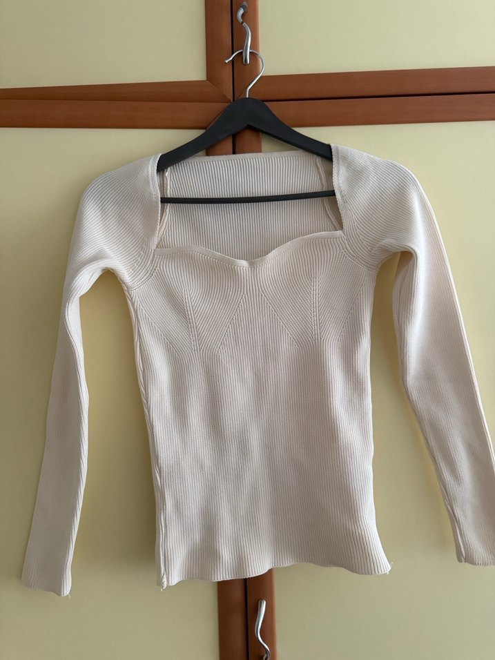 V yaka ve uzun kollu, beyaz renkli, vücuda oturan triko kazak. Minimalist tarzı ve günlük kullanım için uygun yapısı ile rahat bir seçimdir. Çok şık ama Bana dar olduğu için satıyorum esneme payı çok yok.