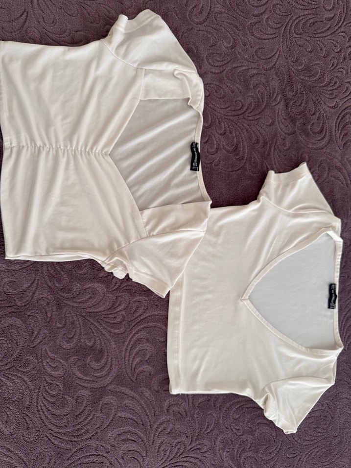 Beyaz, V yaka ve kısa kollu, ince ve kısa kesim crop toplar, rahat ve şık sokak stili için uygundur. ✨