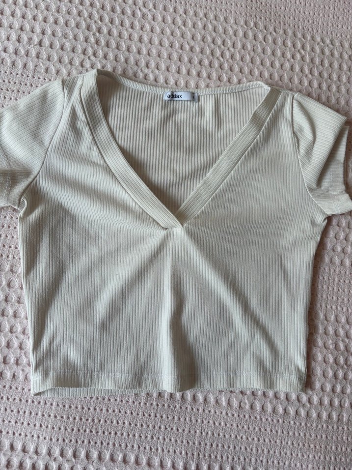Beyaz V Yaka Kısa Kollu Crop Top