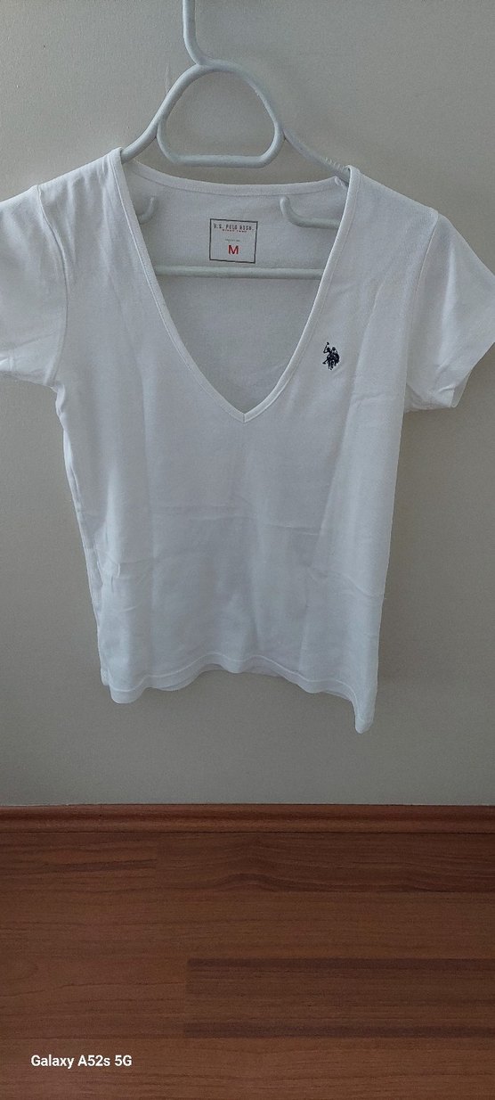 Beyaz V Yaka Kısa Kollu Kadın Tişört