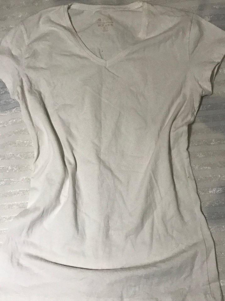 Beyaz V Yaka Kısa Kollu Kadın Tişört