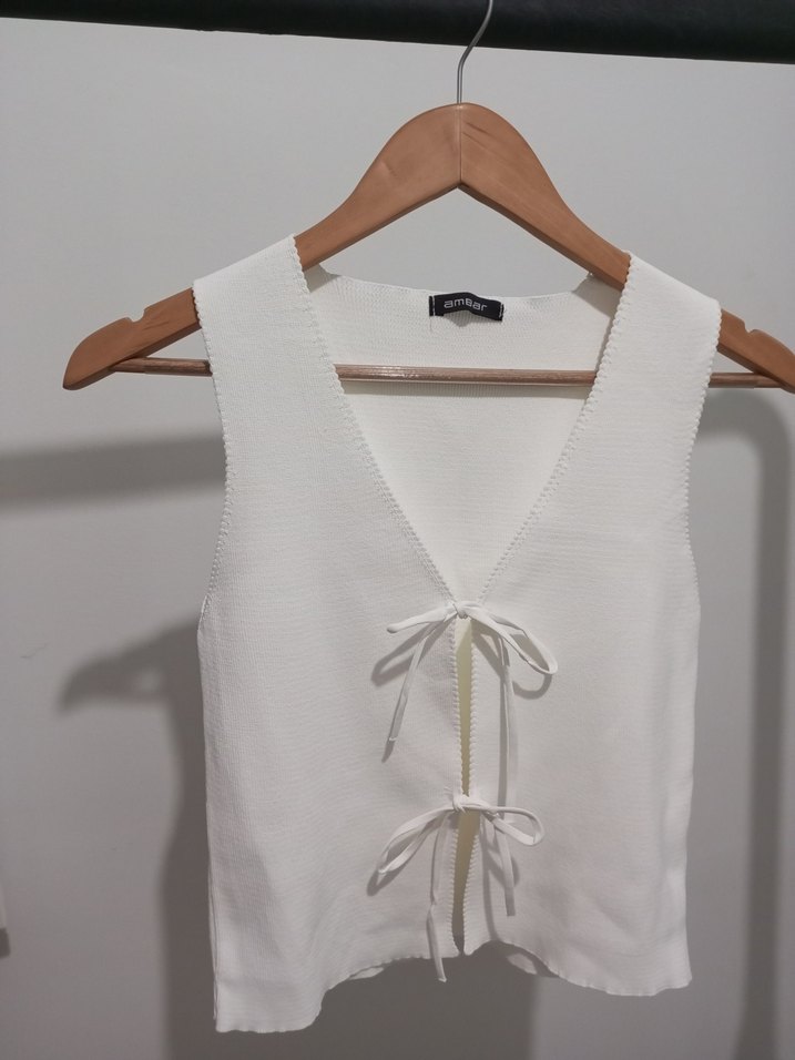 Beyaz V Yaka Kolsuz Kadın Yelek