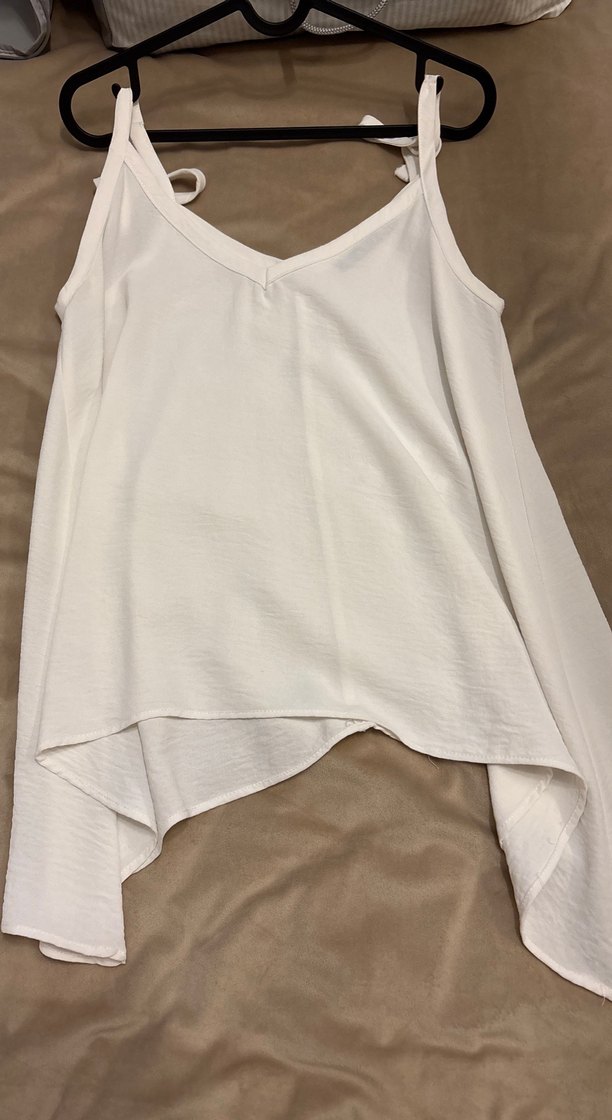 Yumuşak keten kumaştan, V yaka ve kolsuz, bol kesim, drapeli midi uzunlukta sade bohem tarzda bluz. Günlük kullanıma uygun. Bedeni 36-44 beden arasına rahatlıkla olur