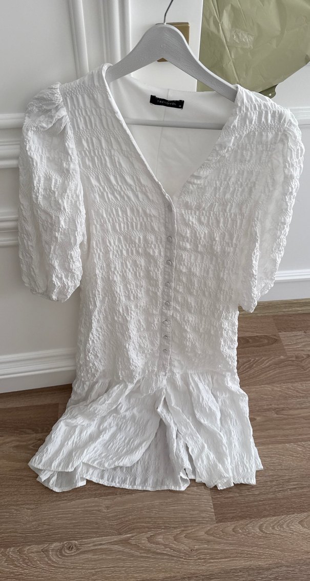 Beyaz V Yaka Midi Bohem Elbise