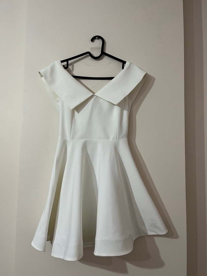 Beyaz V Yaka Midi Elbise