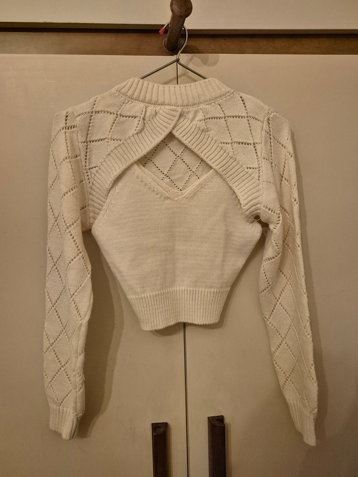 Beyaz renkli, V yakalı ve uzun kollu örgü kadın kazak. Fitted kesimi ve rahat dokusuyla günlük sokak modasına uygun bir parça.