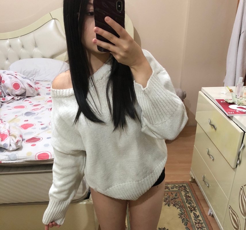 Beyaz, V yakalı, örgü kadın kazak. Rahat kesimi ve uzun kollarıyla günlük sokak stili için uygundur. Midi boy, yumuşak dokulu.