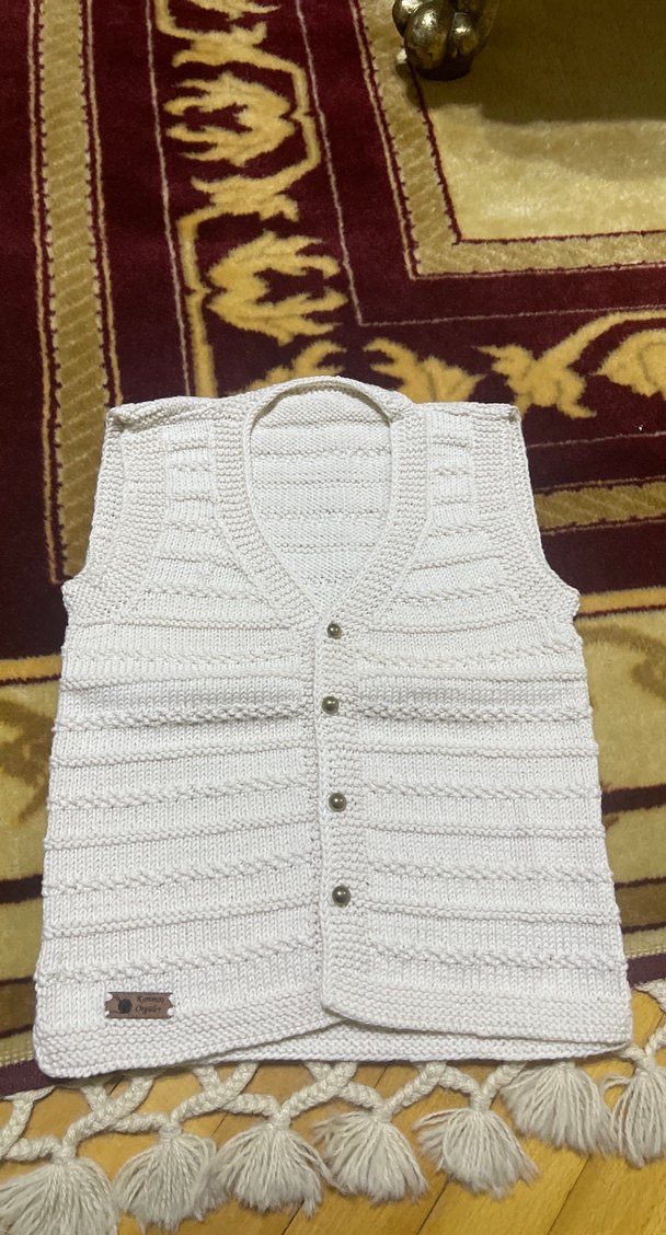 Beyaz V Yaka Örgü kız çocuğu yelek