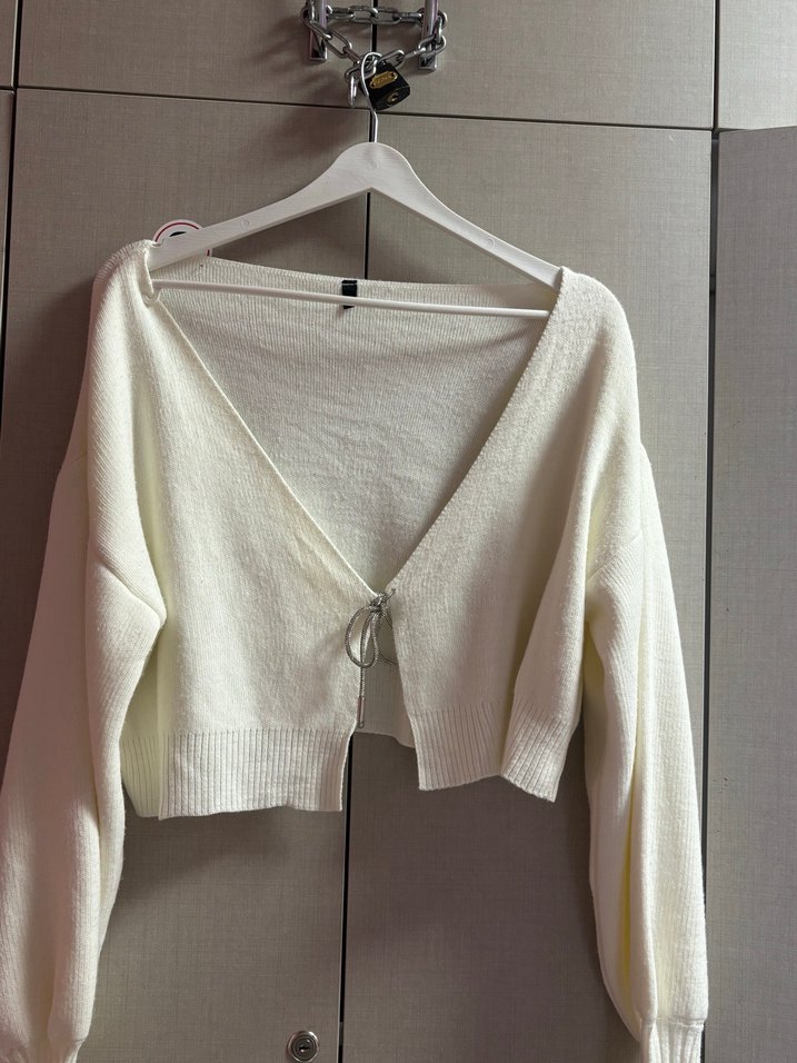 Beyaz V Yaka Örgü Salaş Hırka