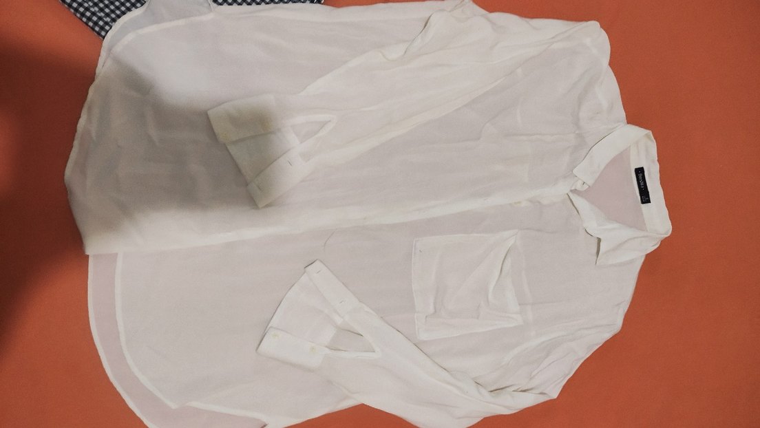 Beyaz V Yaka Transparan Keten Gömlek