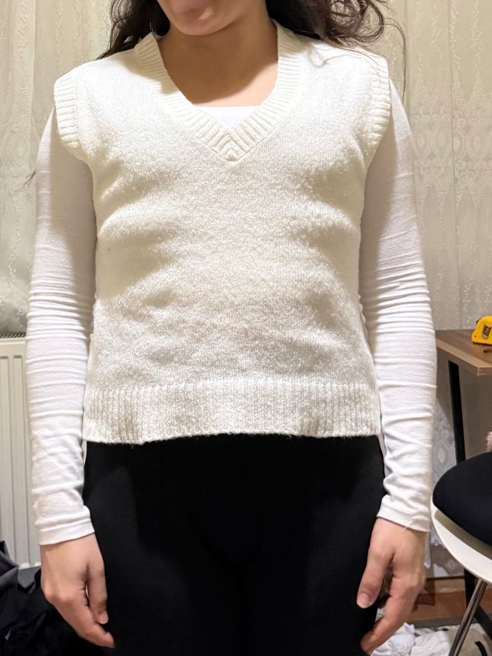 Beyaz V Yaka Triko Kadın Süveter