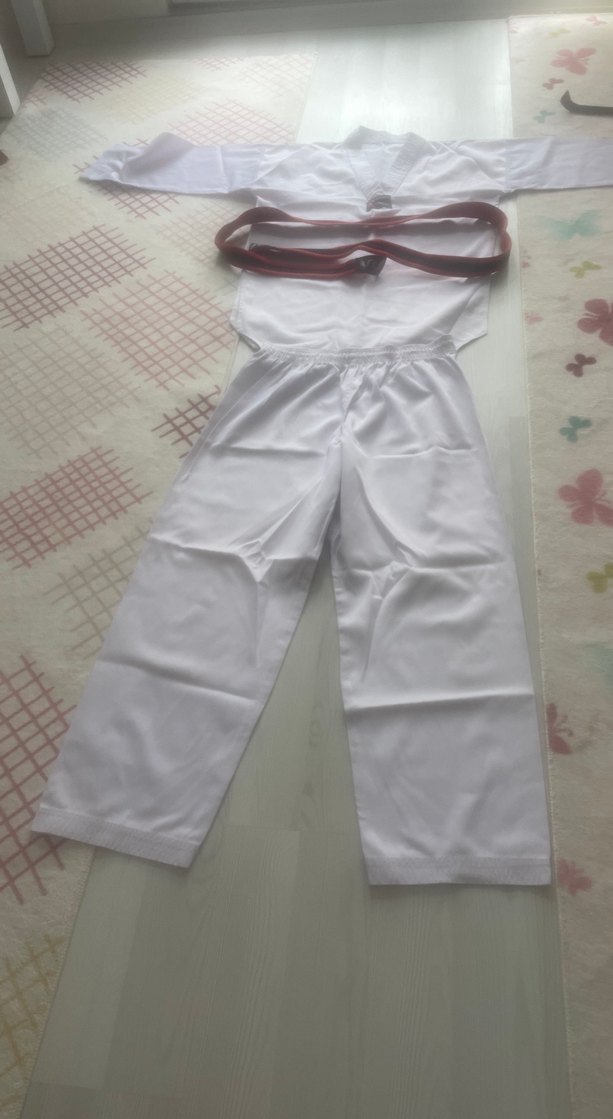 Beyaz renkte, V yakalı ve askılı kollu çocuk takımıdır. Kemerli ve regular fit kesimiyle sokak tarzına uygundur. Tekvonda kıyafeti az kullanıldı kuşagıda hediyedir