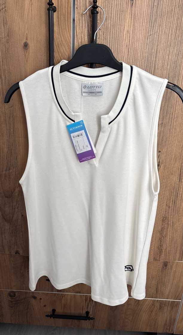 Pamuklu, beyaz, v yakalı ve kolsuz kadın atlet. Rahat ve bol kesimiyle sportif ve günlük şıklık sunar. Siyah ince detay içerir. ♀️ürün sıfır etiketlidir