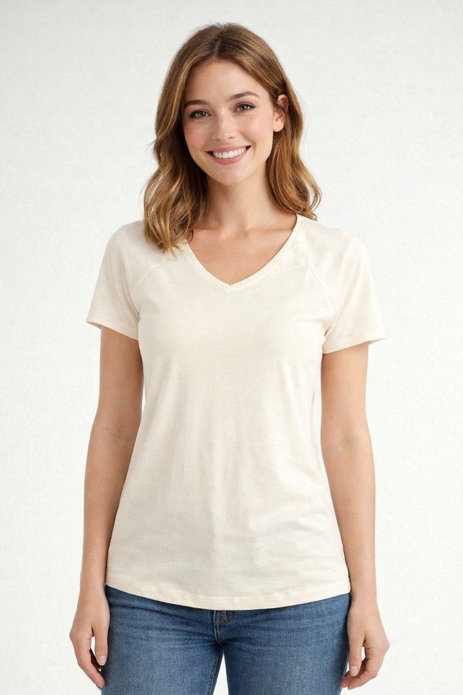 Beyaz V Yakalı Kadın Tişört