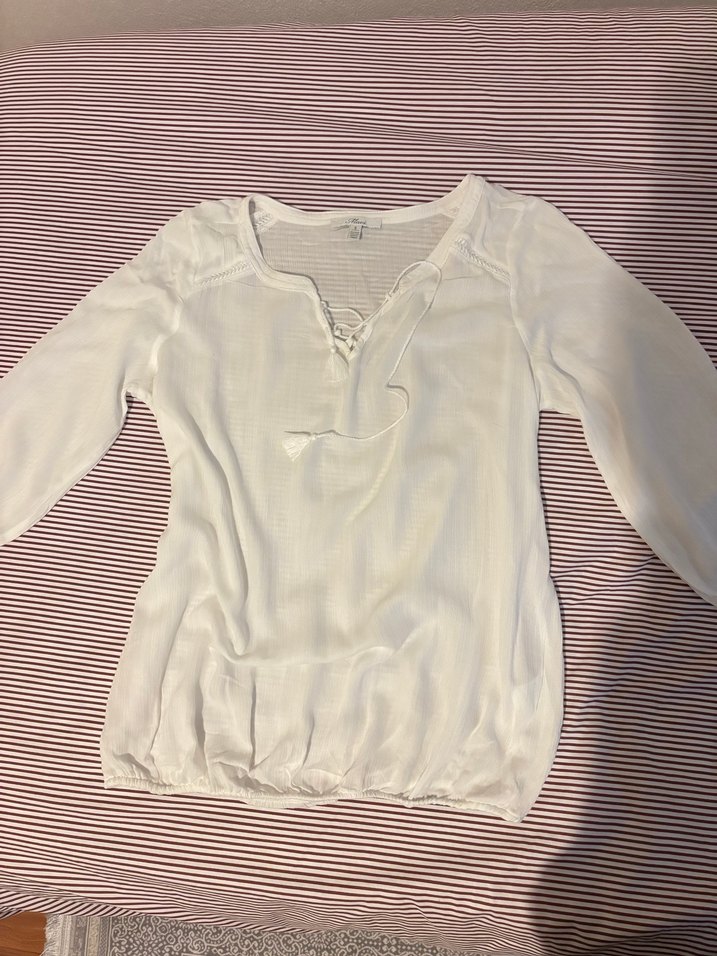 Beyaz V Yakalı Uzun Kollu Bohem Bluz