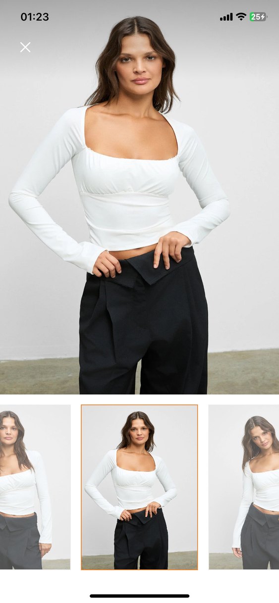 Beyaz, pamuk kumaştan yapılmış, kare yakalı ve uzun kollu, vücuda oturan kadın bluzudur. Minimalist ve sokak stiline uygun, günlük kullanıma elverişlidir. ✨