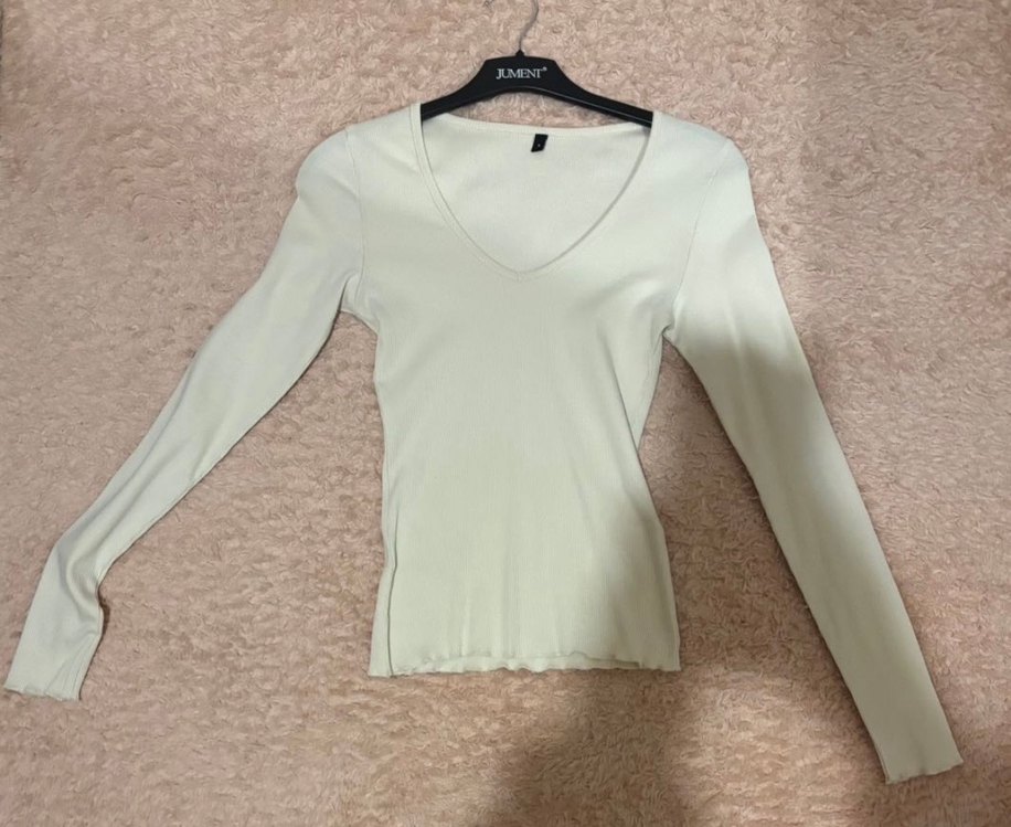 Beyaz V Yakalı Uzun Kollu Kadın Kazak