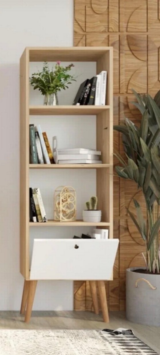 Beyaz ve Ahşap Kitaplık