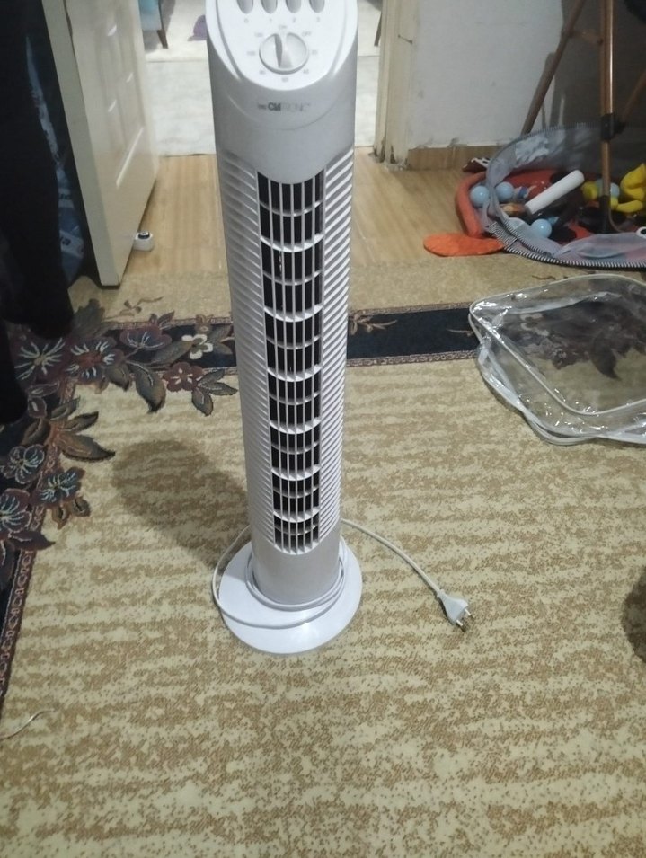 Beyaz ve gri renklerde, ayaklı ve ince tasarımlı vantilatör, ayar düğmesiyle hız kontrolü sağlar.Soğuk hava üflemeli kademeli olarak kullanabilirsiniz şehir dışına taşınacağım için satıyorum herhangi bir sorunu yok.️