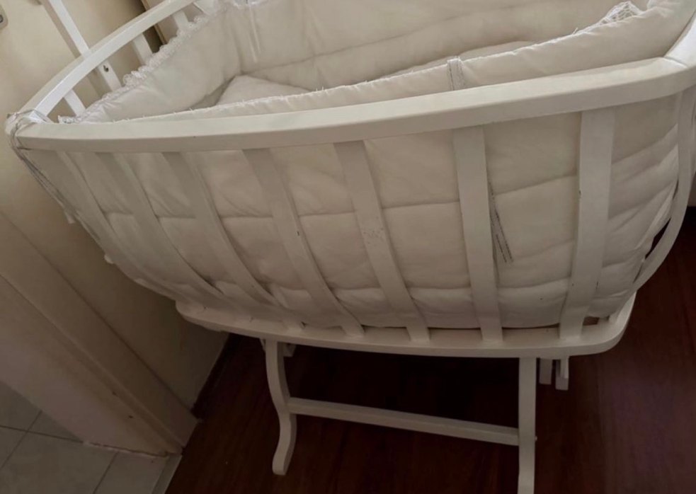 Yumuşak gri dolgulu beyaz bebek beşiği, sağlam çerçeve ve hafif sallanma tabanına sahip rahat bir dinlenme alanı sunar.şifonyer ve 3 lü dolapta mevcuttur fiyatı uygun tutuyorum KONYA SELÇUKLU