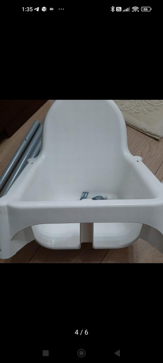 Beyaz ve gri renkli, geniş oturma alanına ve sağlam yapıya sahip bebek mama sandalyesi. ️