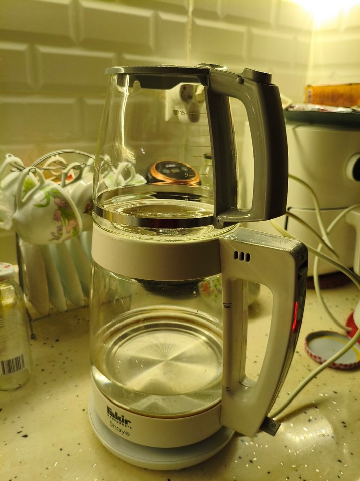 Beyaz ve gri detaylara sahip cam gövdesiyle kolay demleme ve dökme imkanı sunar. Kullanışlı kulplu ve kompakt tasarıma sahiptir.
