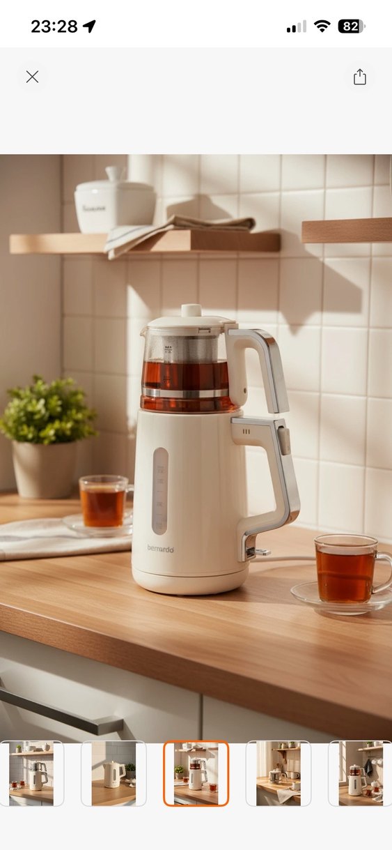 Beyaz ve gri renkte, cam demlikli ve ergonomik saplı çay makinesi. Modern tasarımıyla çay demlemeyi kolaylaştırır.