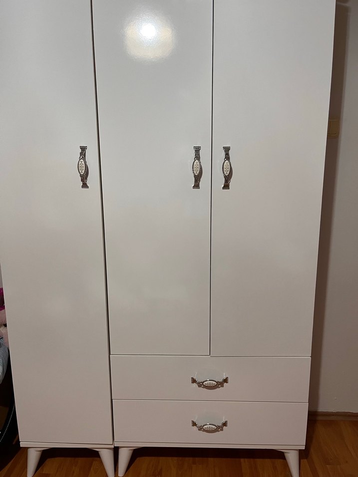 Üç kapaklı ve iki çekmeceli beyaz-gri çocuk gardıropu az kullanıldı kızıma oda takımı aldığım için satıyorum hiçbir sorunu yoktur yeniden farksızdır nakliye alıcıya aittir marka temsilidir