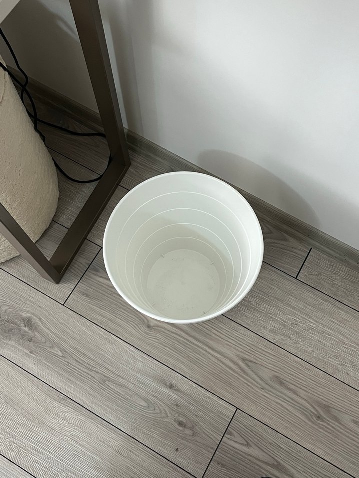 Beyaz ve gri renkte, yuvarlak ve sade tasarımlı dekoratif vazo. İkeadan aldım