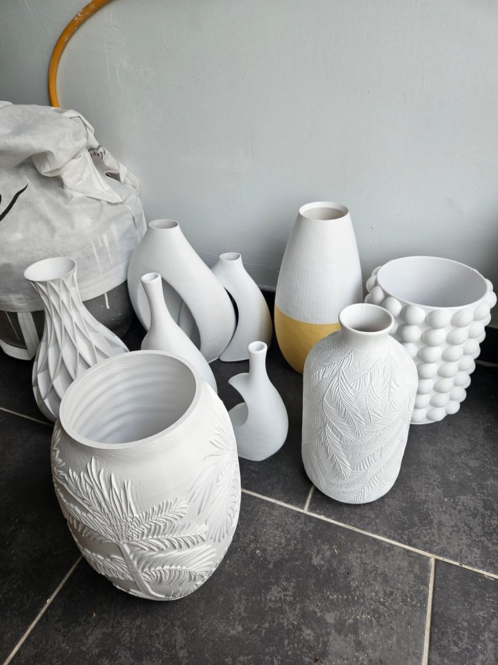 Beyaz ve gri dekoratif vazolar seti