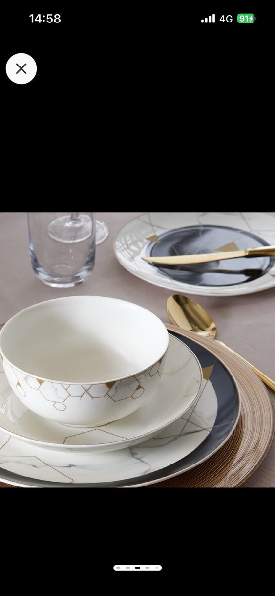 Beyaz ve gri geometrik desenlere sahip, pürüzsüz ve şık yüzeyli yemek kasesi.